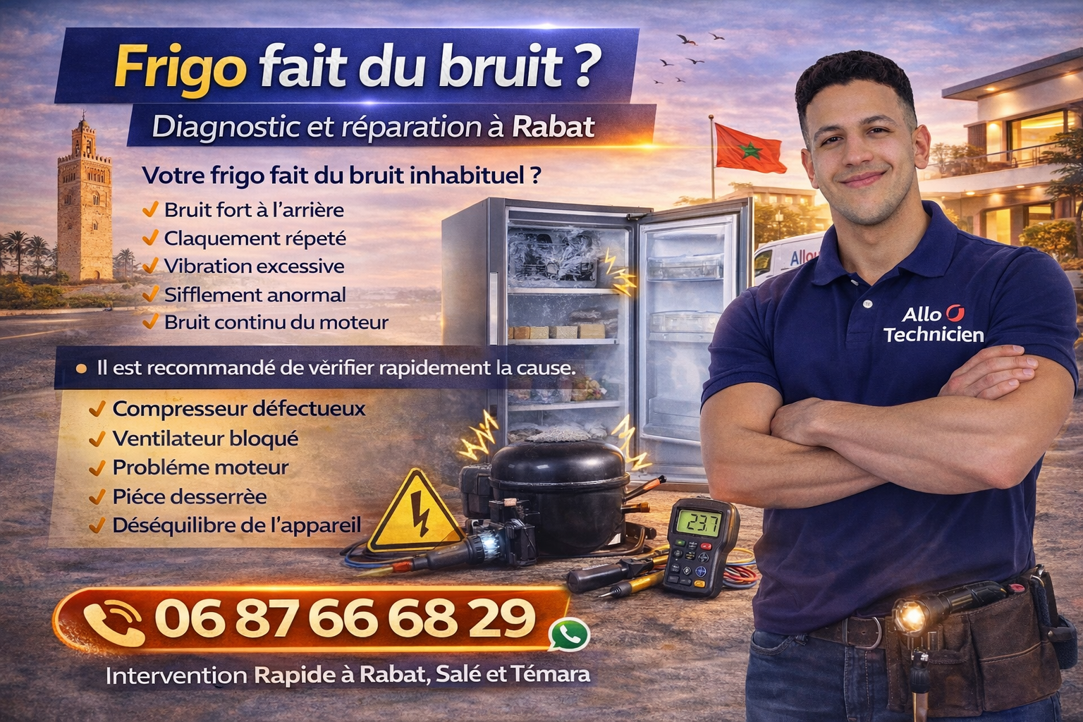 frigo fait du bruit réparation rabat 06 87 66 68 29